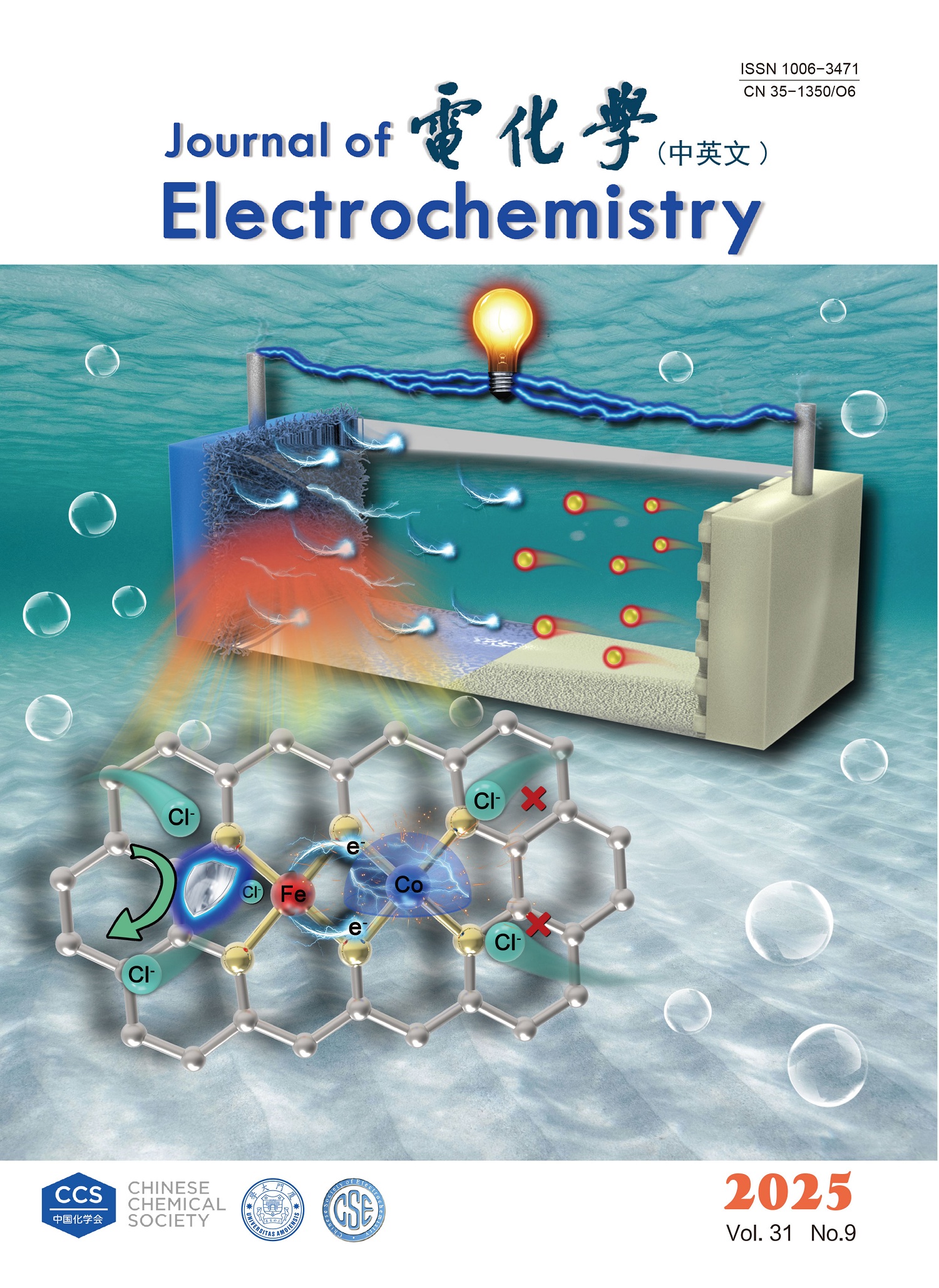 开发适用于海水电解质的高性能氧还原反应(ORR)电催化剂是实现海水锌空气电池(SZABs)发展的关键。本文提出了一种在双金属单原子催化剂中构建局域电场耦合氯离子固定策略,所制备催化剂在海水电解质中表现出优异的ORR性能,其半波电位(E1/2)高达0.868 V,组装的SZABs最大功率密度(Pmax)达182 mW·cm−2,显著优于商用Pt/C催化剂(E1/2: 0.846 V;Pmax: 150 mW·cm−2)。原位表征和理论计算结果表明,铁位点比钴位点具有更强的氯离子吸附亲和力,能够在ORR过程中优先吸附海水中的氯离子,并通过同离子排斥效应构筑低氯离子浓度的局域微环境,从而抑制氯离子对钴活性中心的吸附和腐蚀,实现优异的催化稳定性。此外,铁-钴原子对之间的定向电荷迁移形成局域电场,优化了钴位点对含氧中间体的吸附能,进一步提升ORR催化活性。