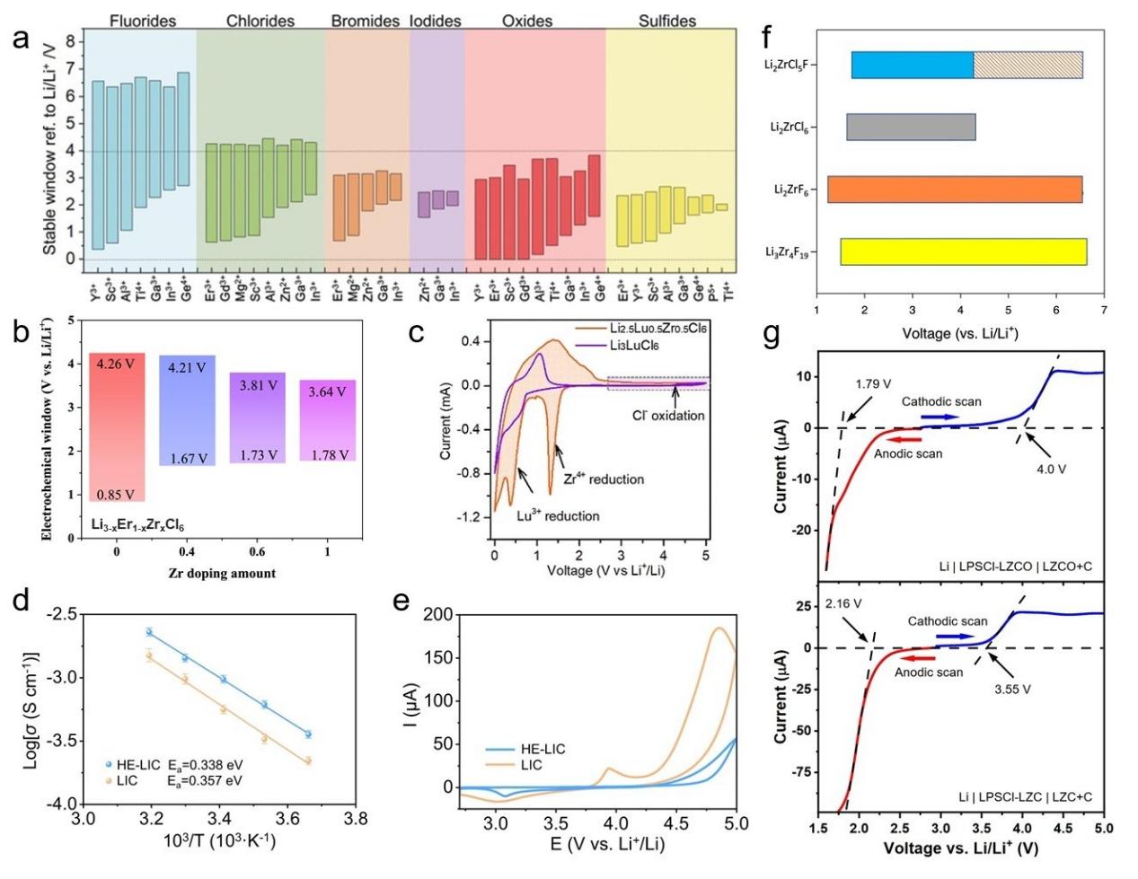 | Halide | Crystalline Li3InCl6, Amorphous LiTaOCl4 | 10−4-10−2 | • Good mechanical strength and interfacial adaptability • High electrochemical oxidation voltage | • Low chemical stability • Sensitive to moisture • Unstable with lithium metal | |||