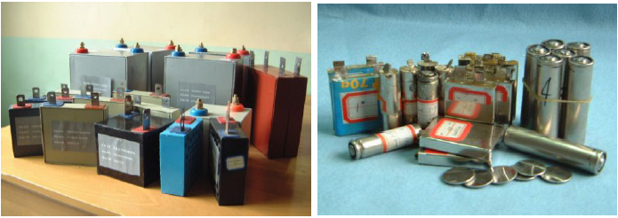 C/NiOOH hybrid capacitors (left) and various small super capacitors (right)