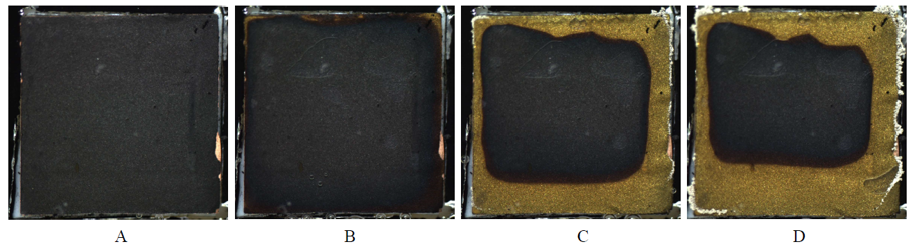 | Figure 3 Photos of the square graphite electrode, charging (A) 1 min; (B) 20 min; (C) 80 min; (D) 120 min. (color on line) |