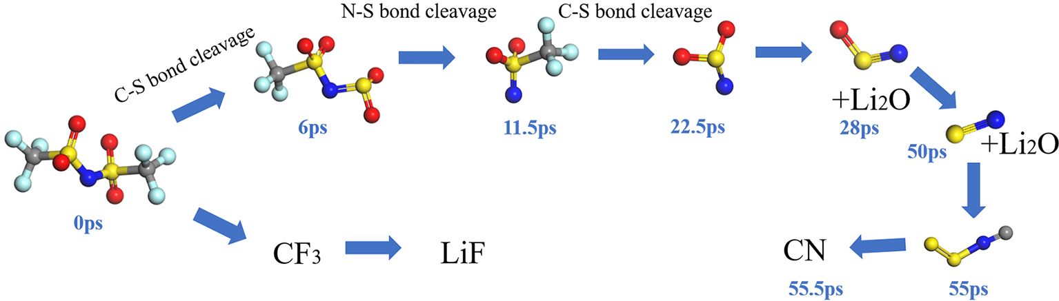 | Figure 4 Reaction pathway obtained from HAIR simulations for LiTFSI in 1 mol·L-1 LiTFSI-DME electrolyte (color on line) |