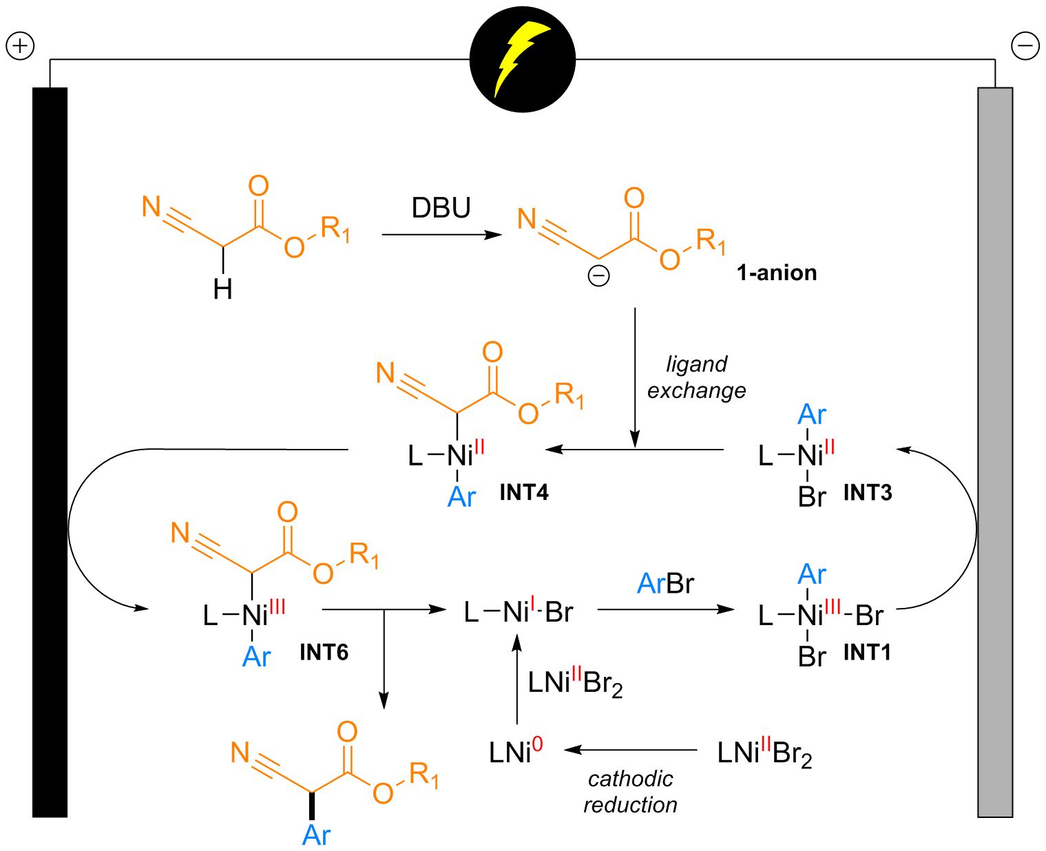 电化学促进的镍催化的α-氰基乙酸酯的α-芳基化反应