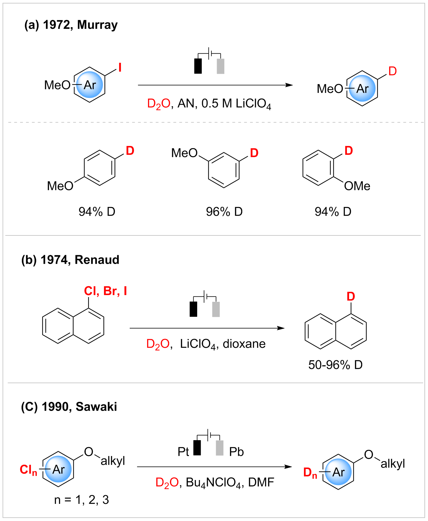 Early electrochemical dehalogenation deuteration efforts.