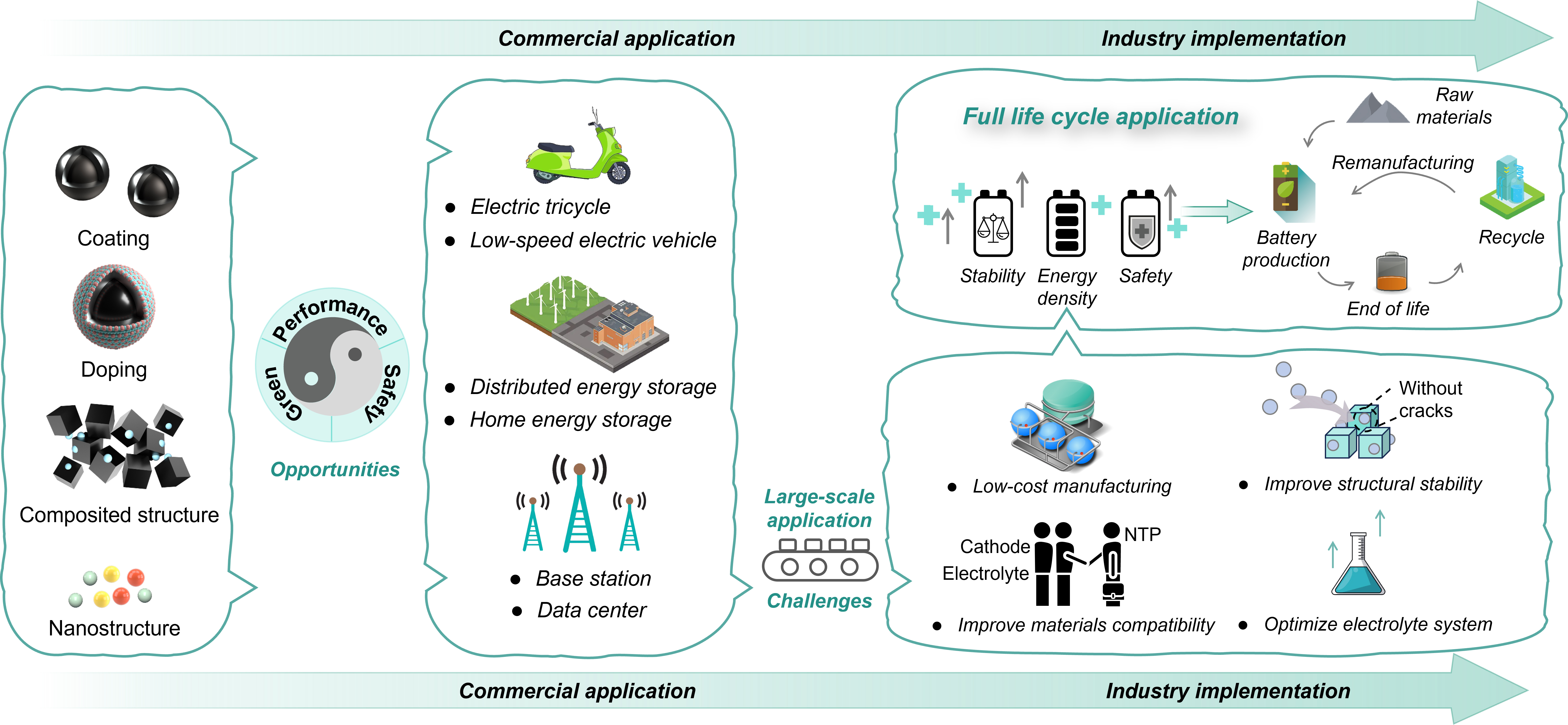 | Fig. 8. A schematic diagram illustrates the fundamental materials design, commercial application, and industry implementation of ASIBs. |